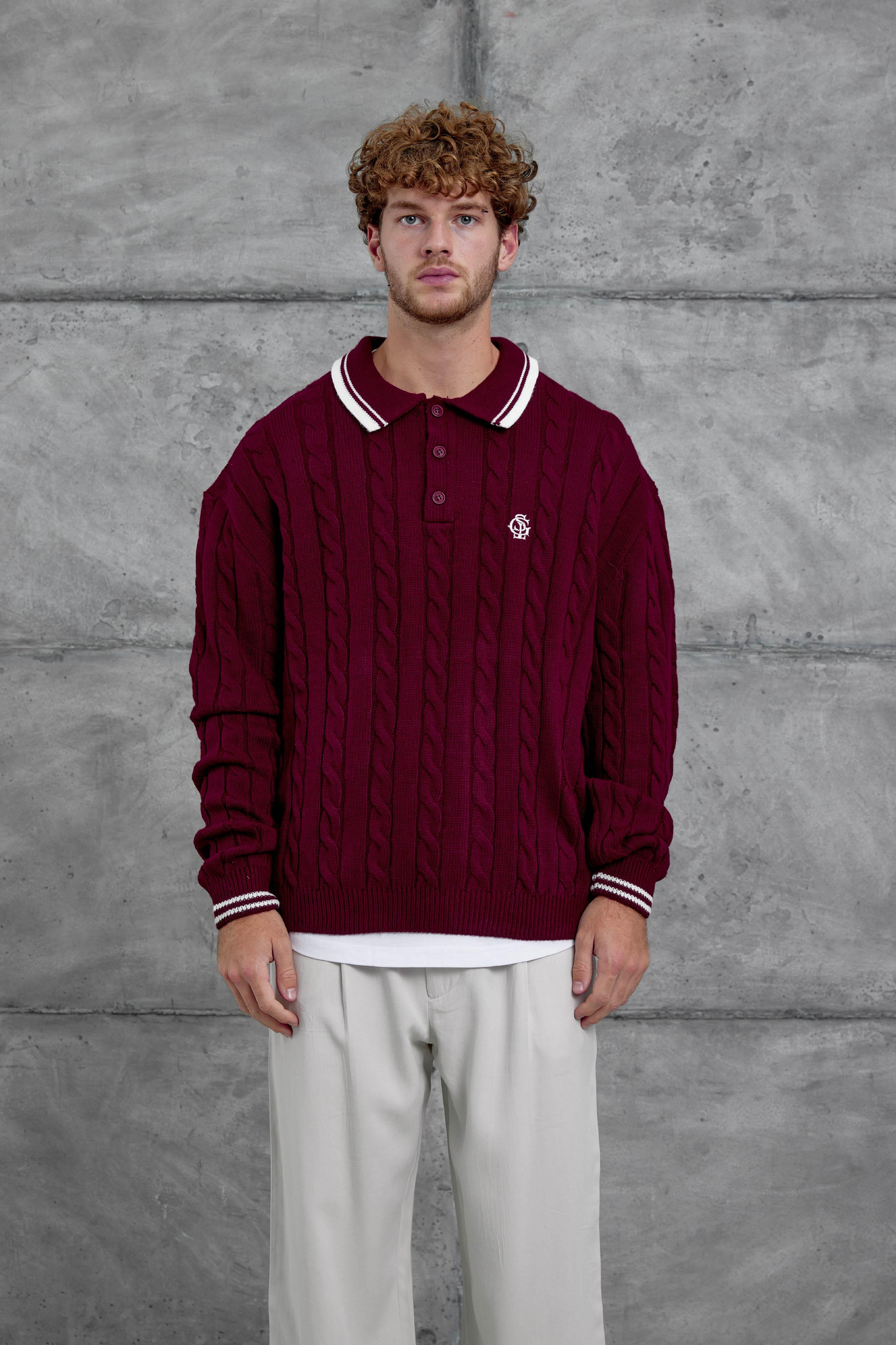Bordo Gst Polo Yaka Örme Oversize Triko (P-004359)