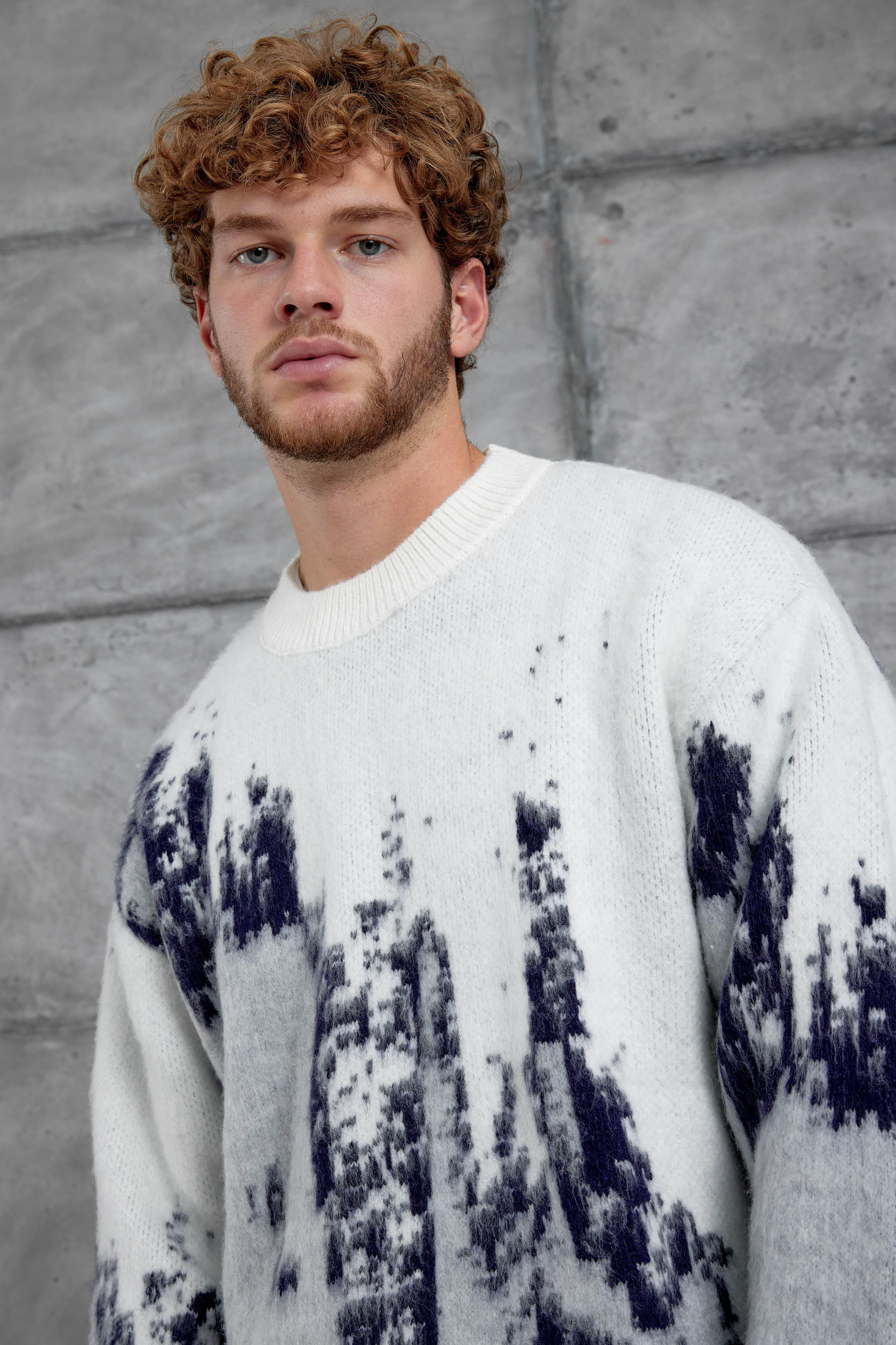 Mavi 251 Desenli Oversize Yün Triko Ekru Beyaz 251 Desenli Oversize Yün Triko