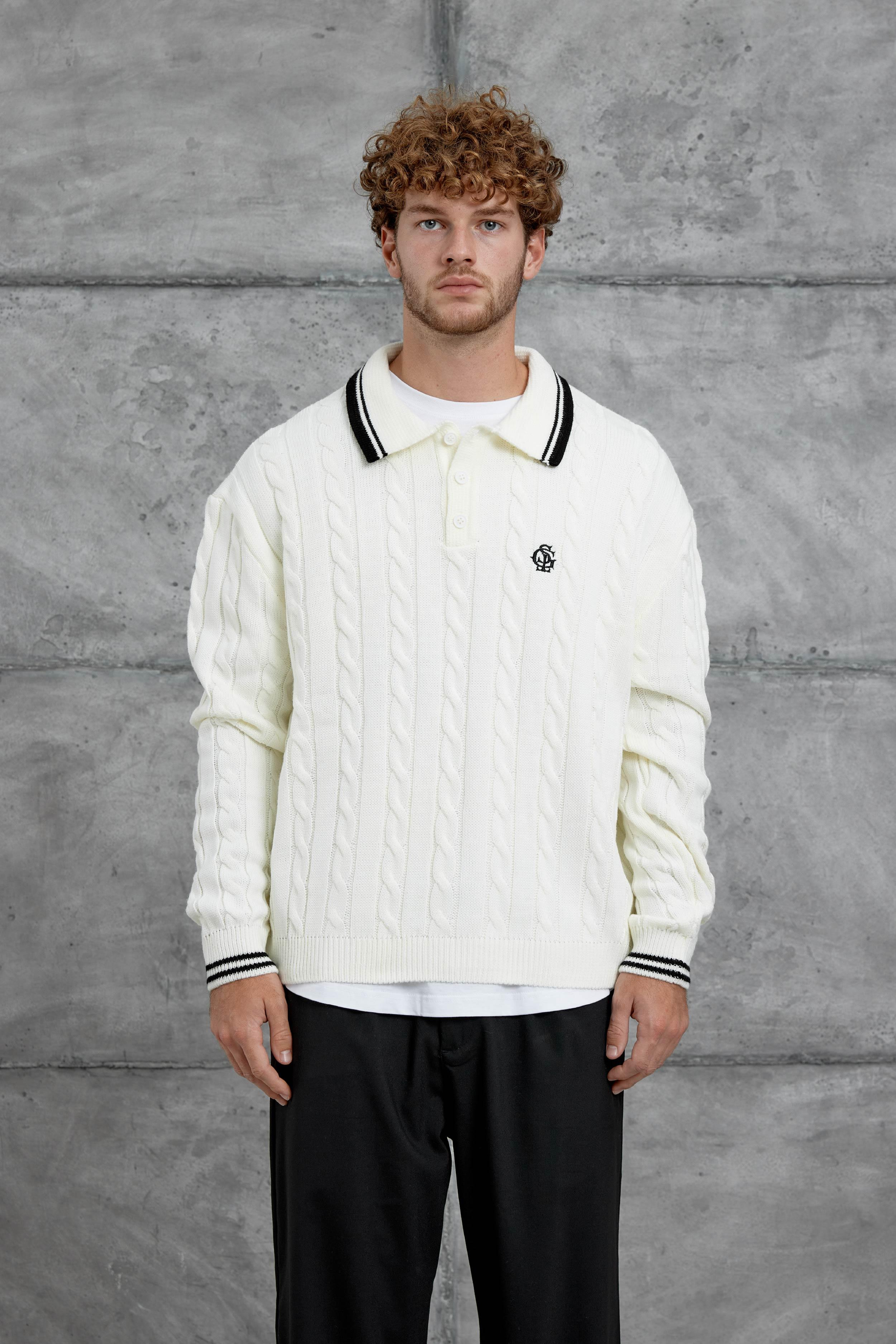 Ekru Beyaz Gst Polo Yaka Örme Oversize Triko