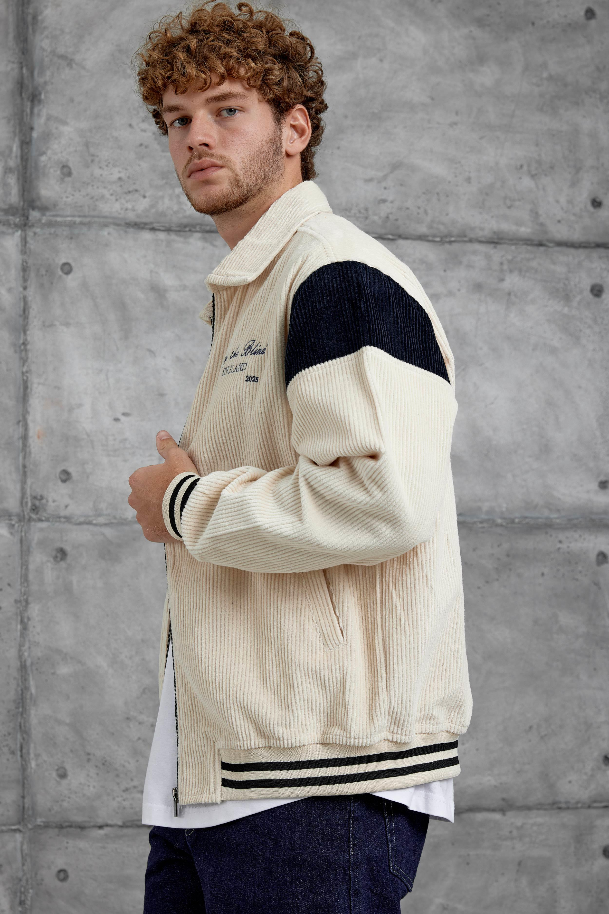 Ekru Beyaz Nmrc Nakış Detaylı Kadife Oversize Ceket
