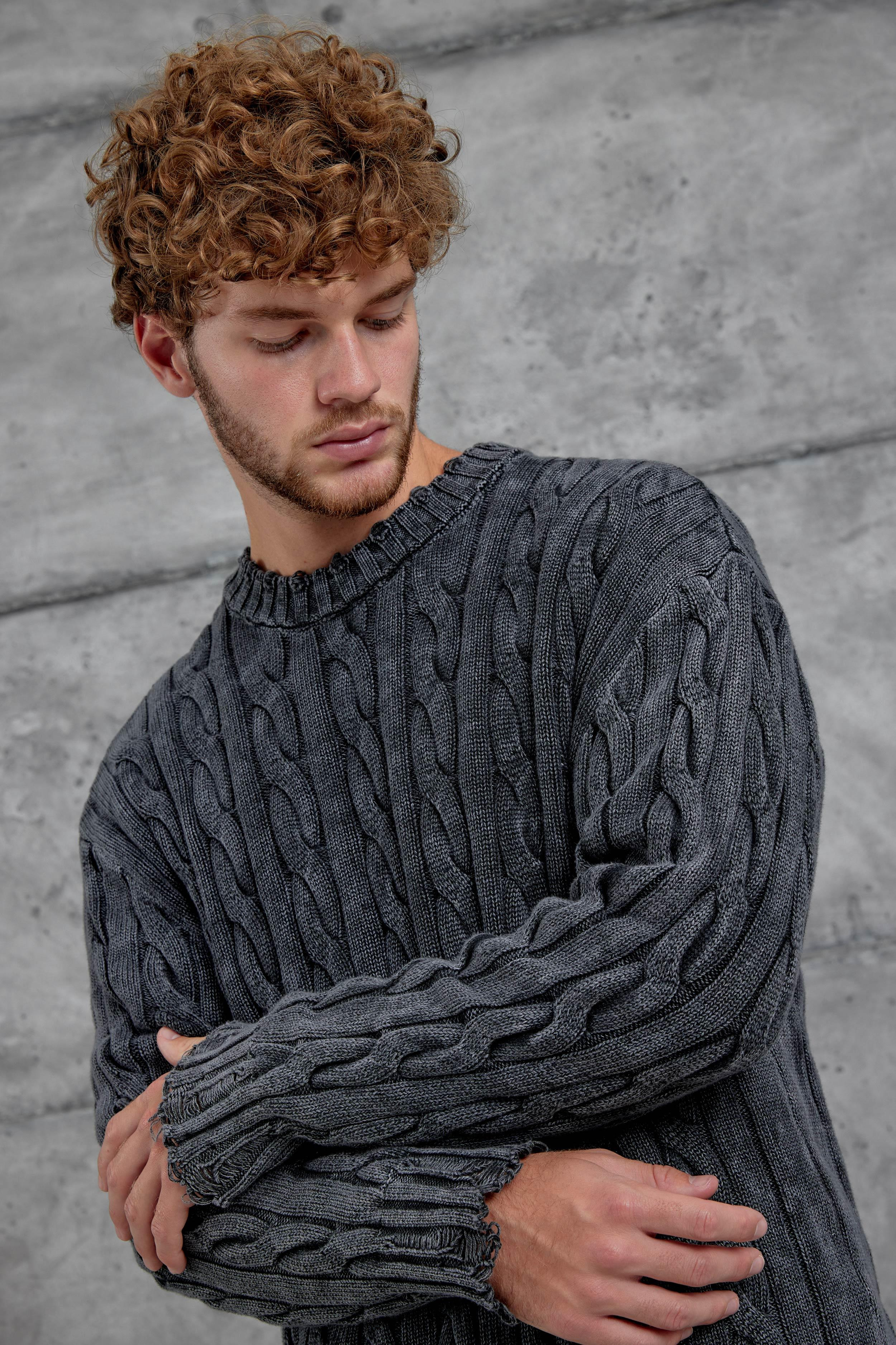 Gri Mrk Örgü Detaylı Oversize Triko Kazak Füme Mrk Örgü Detaylı Oversize Triko Kazak Yeşil Mrk Örgü Detaylı Oversize Triko Kazak