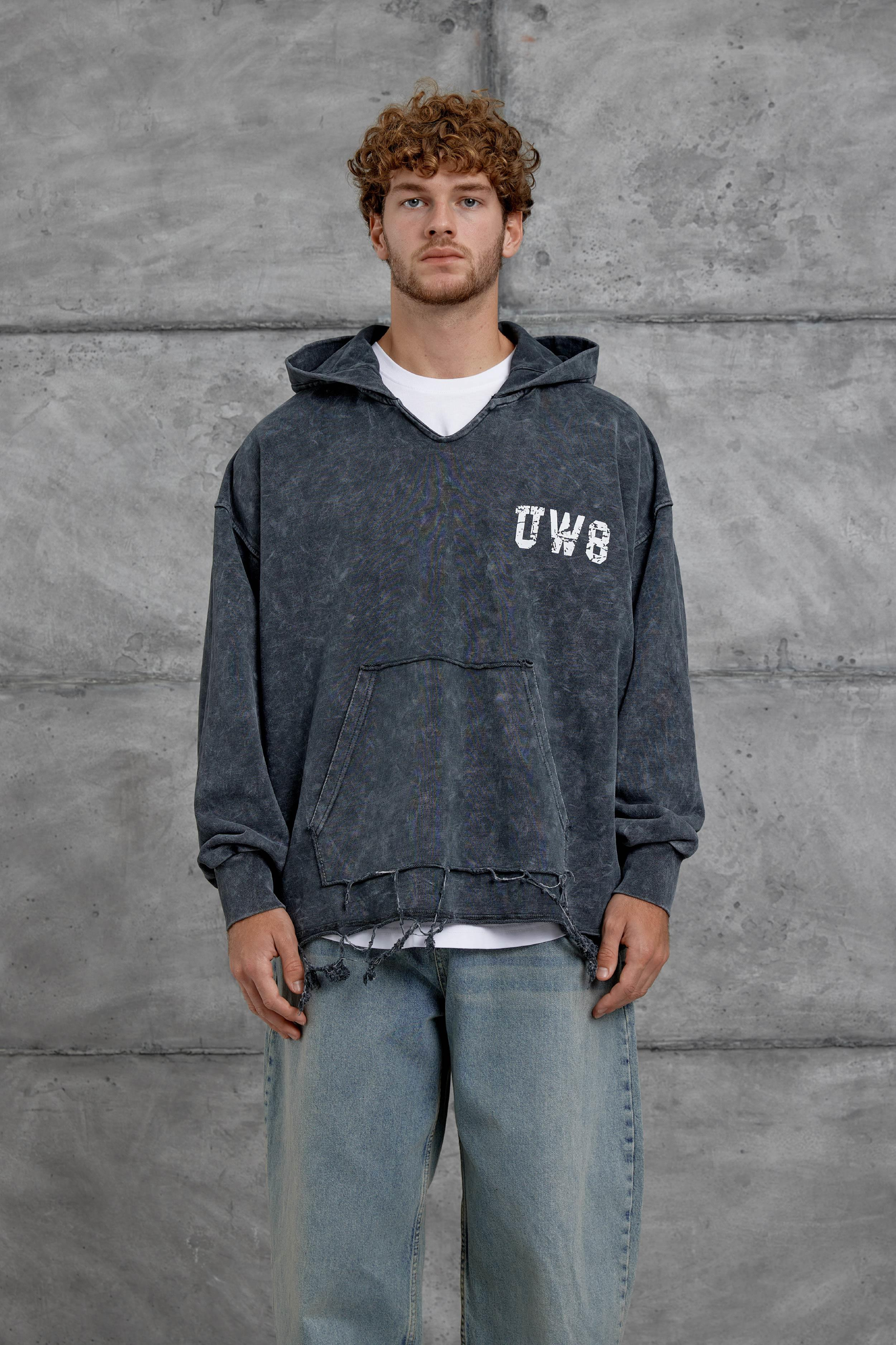 Füme Uv8 Baskılı Yıkamalı Oversize Kapüşonlu Sweatshirt