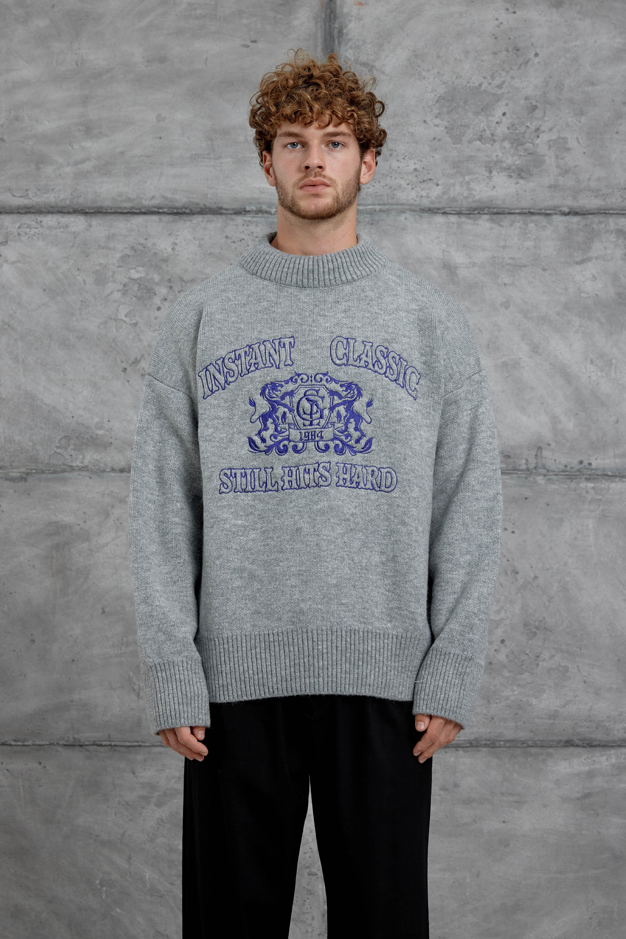 Gri Gst Nakış Desenli Oversize Triko (P-004355)
