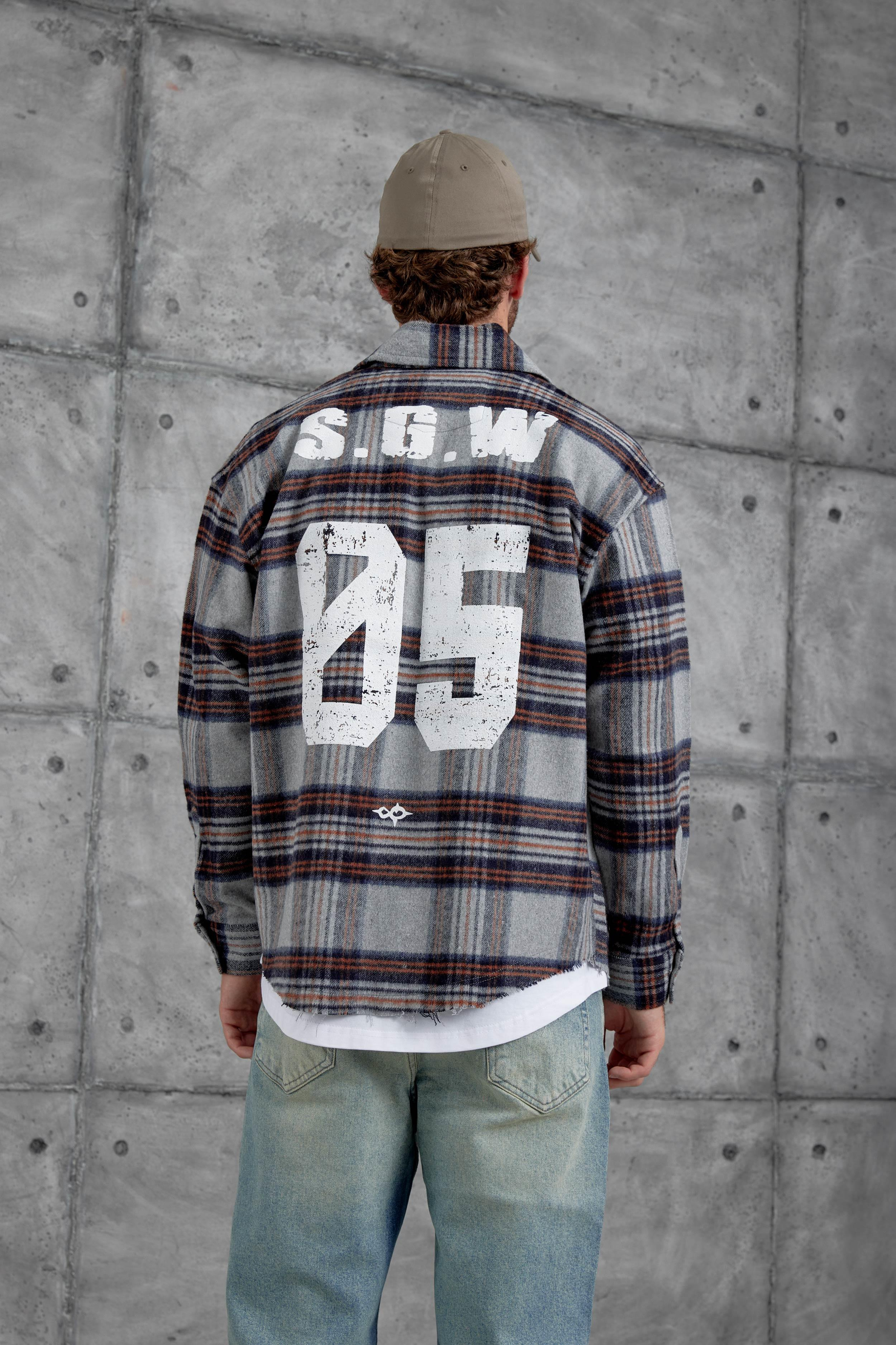 Gri Nmrc Sayı Baskılı Oversize Gömlek