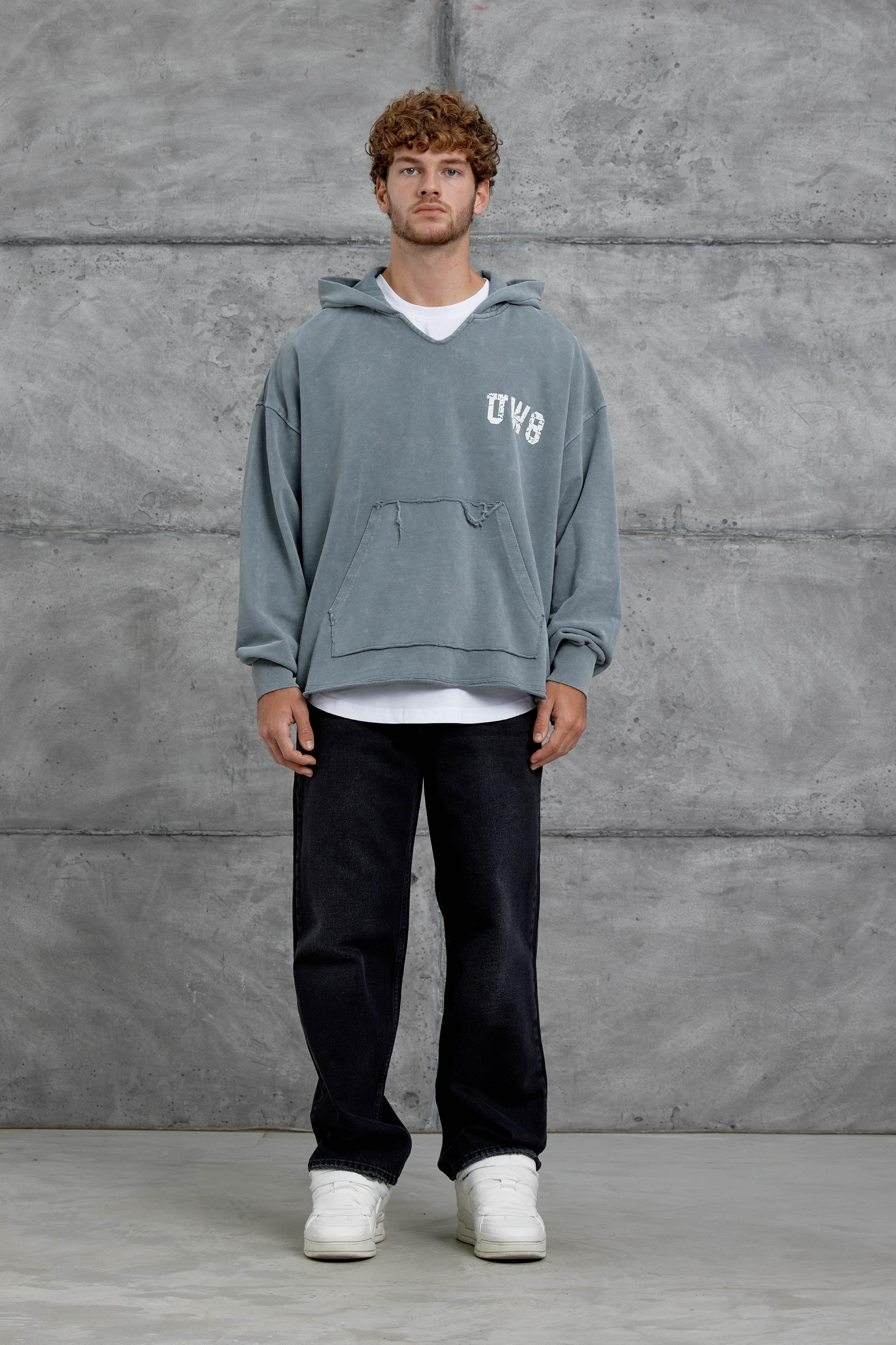 Gri Uv8 Baskılı Yıkamalı Oversize Kapüşonlu Sweatshirt