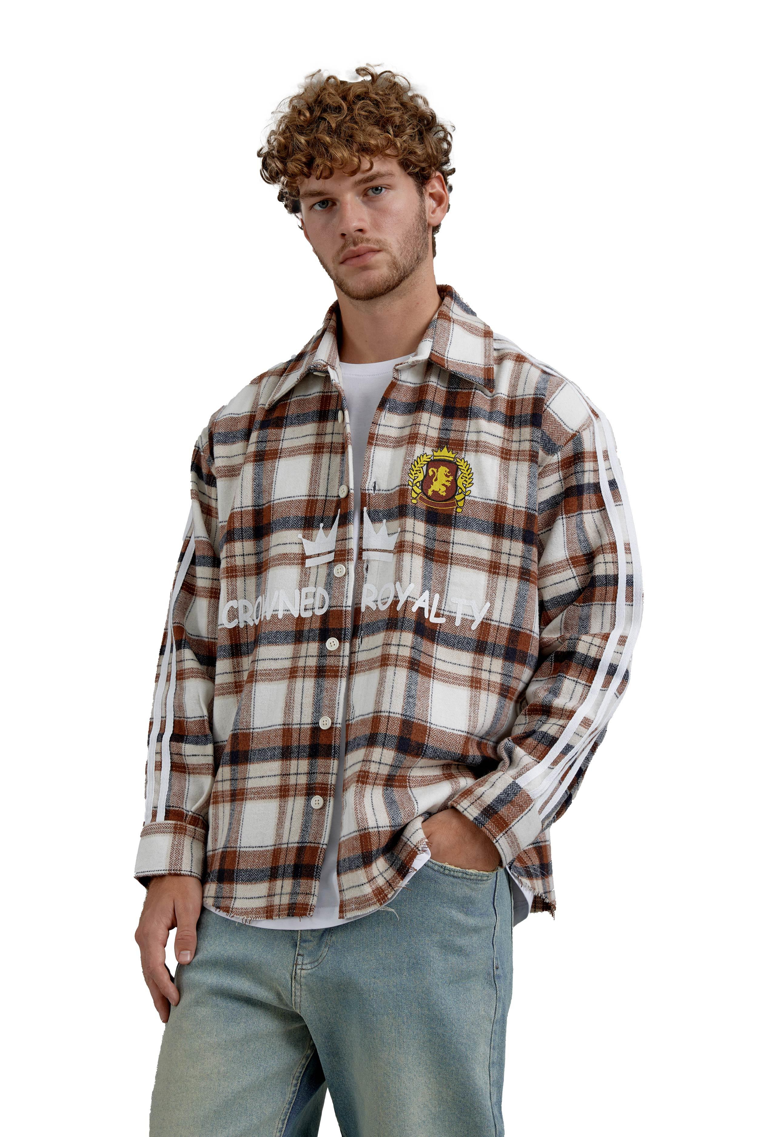 Kahverengi Şerit Detaylı Kareli Oversize Oduncu Gömlek (P-004385)