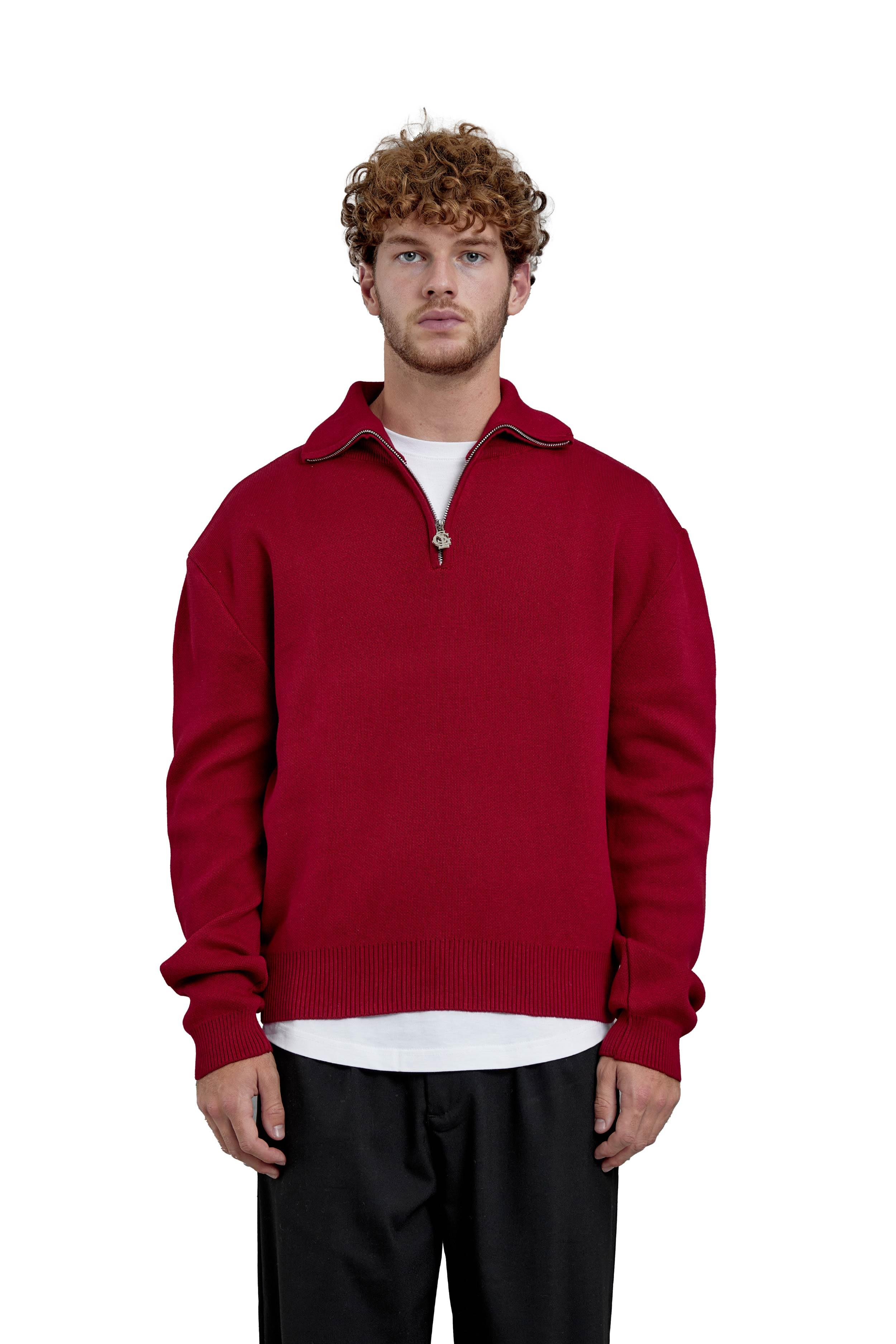 Kırmızı Gst Yarım Fermuarlı Oversize Triko (P-004353)