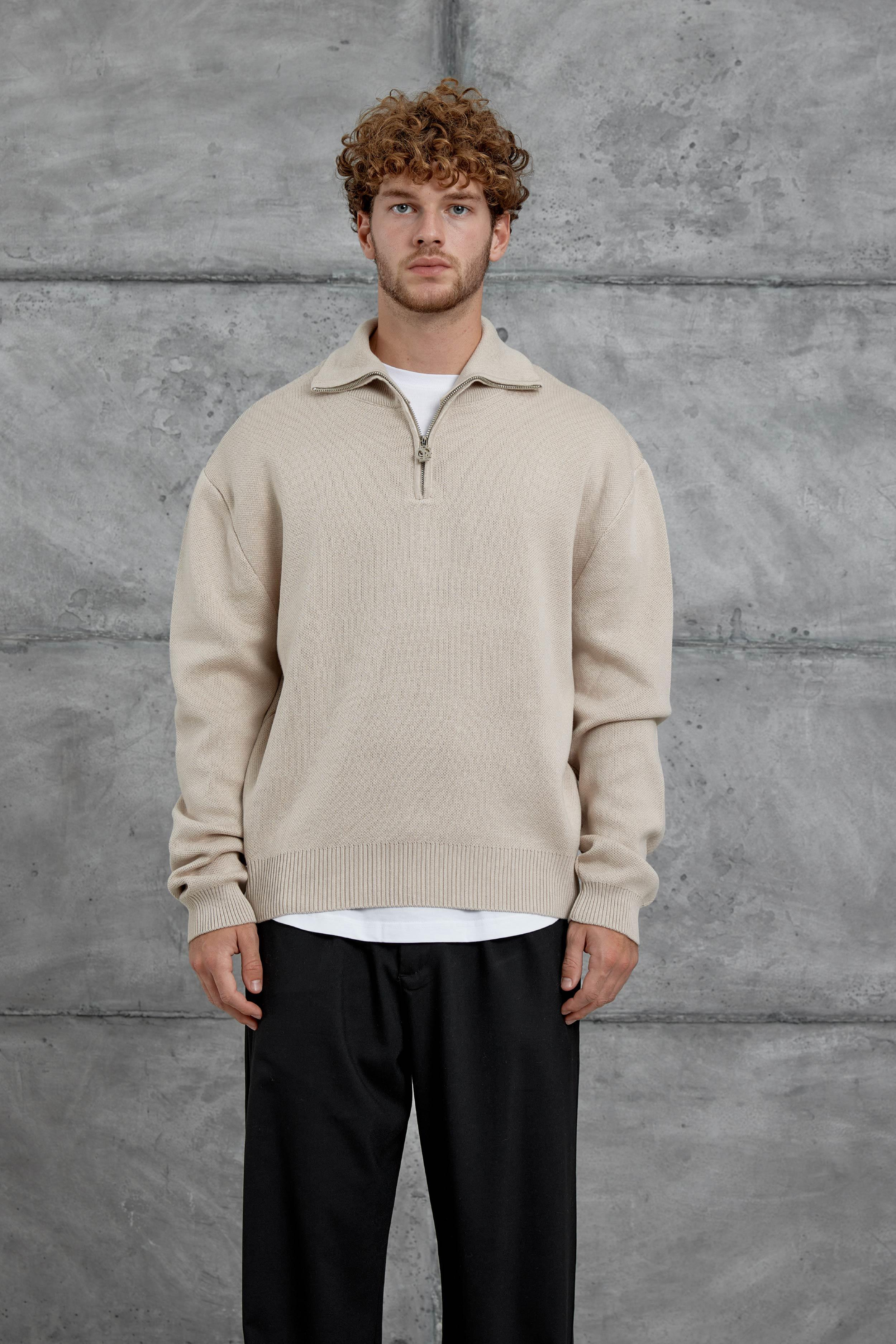 Krem Gst Yarım Fermuarlı Oversize Triko