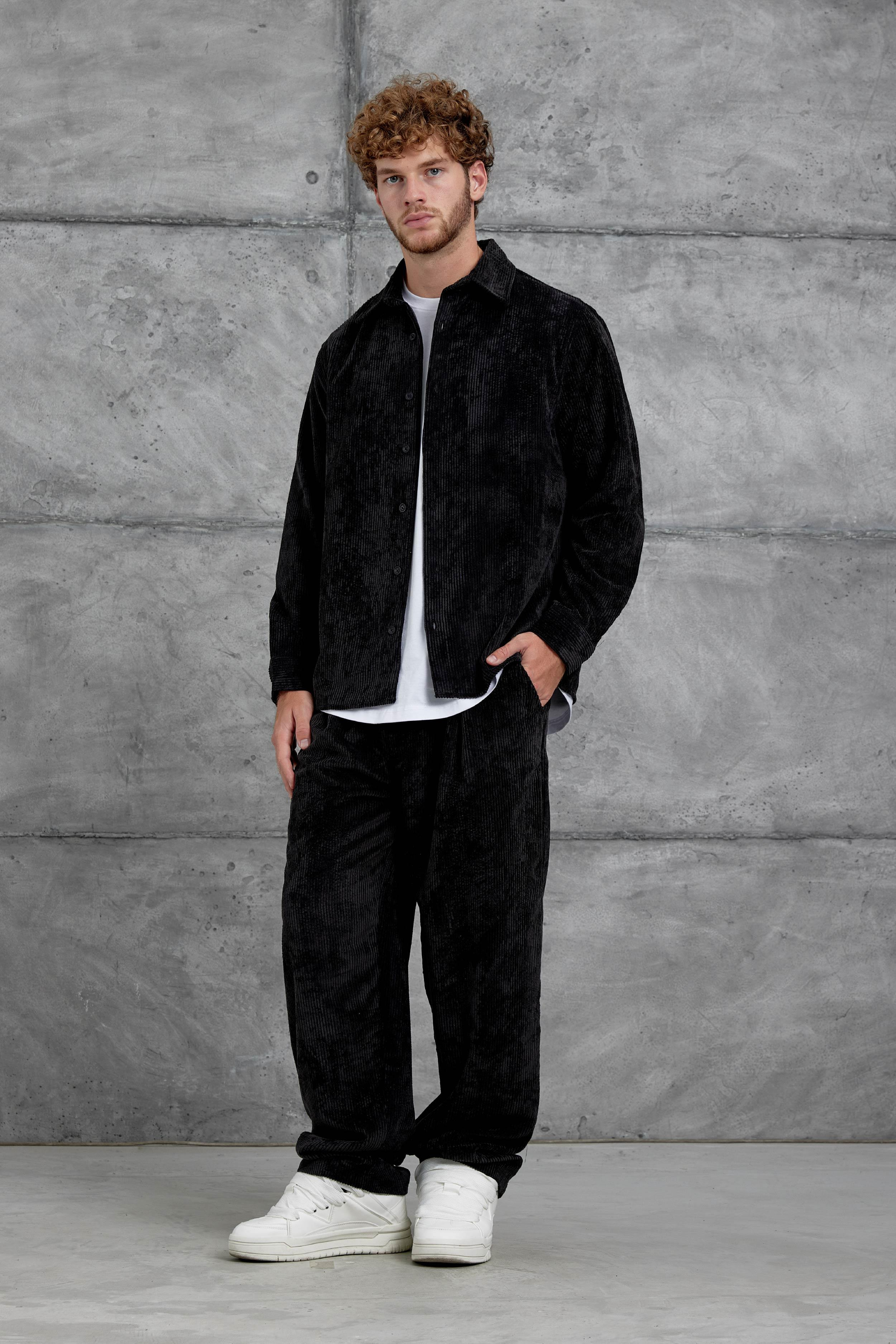 Siyah 251 Kadife Oversize Gömlek ve Pantalon Takım