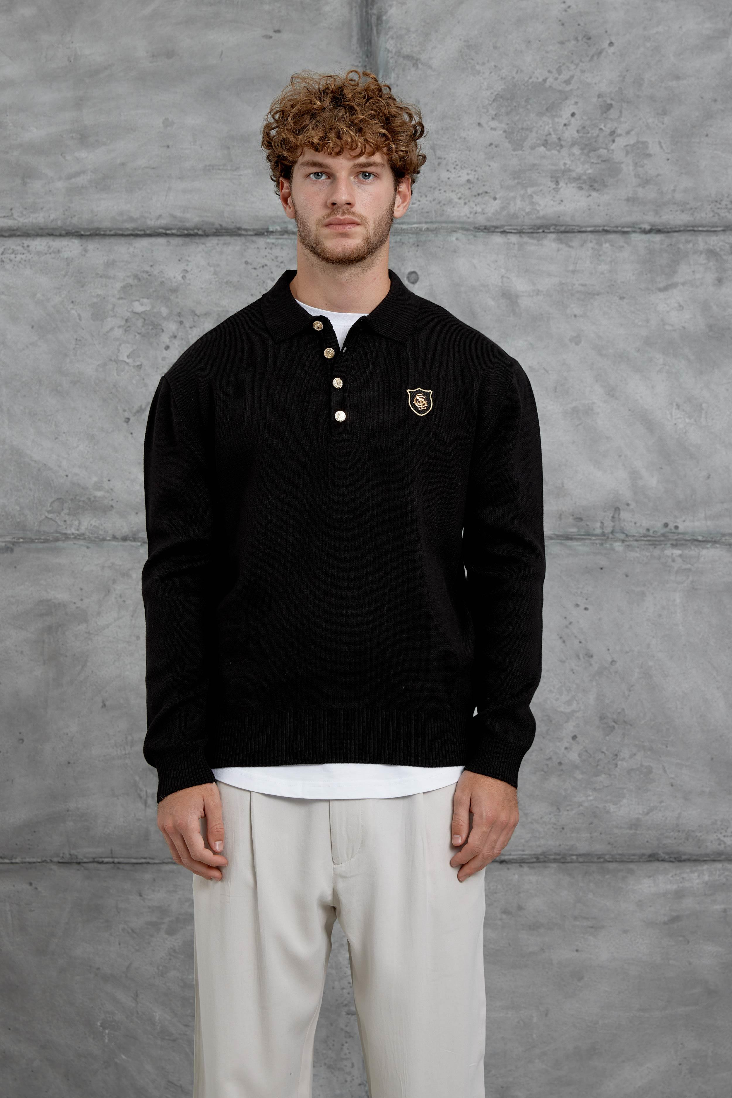 Siyah Gst Arma Detaylı Polo Yaka Triko